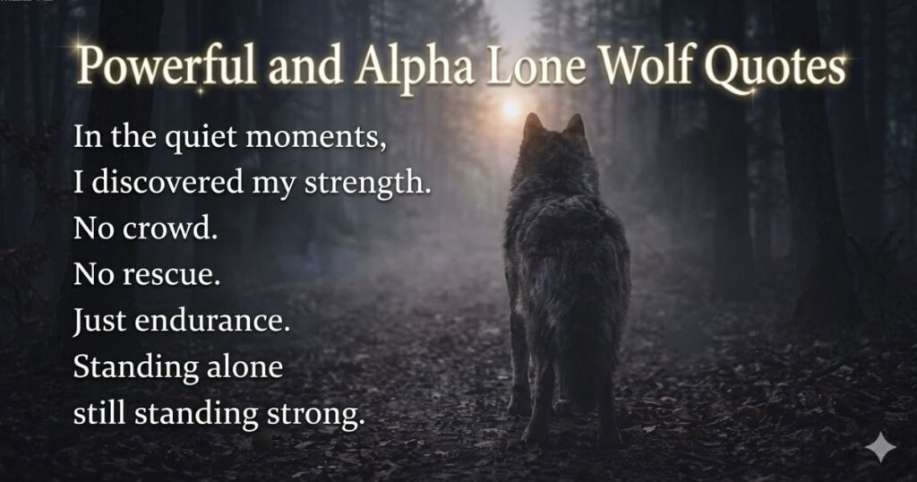 Real strength often grows away from applause. A lone wolf learns patience, discipline, and survival in quiet spaces. These powerful lone wolf quotes, independent wolf quotes, and wolf quotes about strength reflect silent strength, self-confidence, and the courage that comes from trusting your own judgment.
