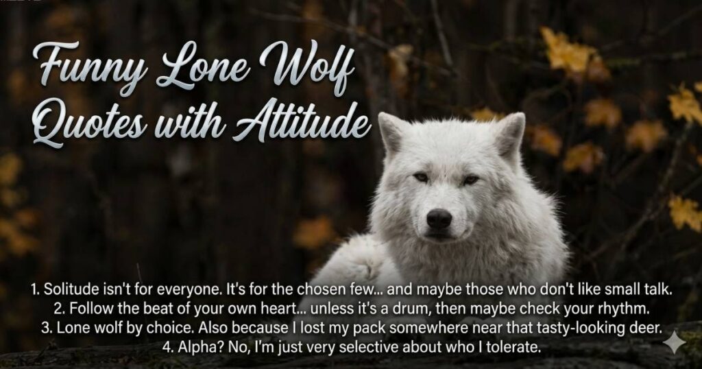 Not every lone wolf quote needs a storm cloud behind it. Some of the best funny lone wolf quotes use wit to show independence. Humor makes solitude feel less heavy. It turns distance into style. It shows that being selective is not sadness. Sometimes it is simply smart.