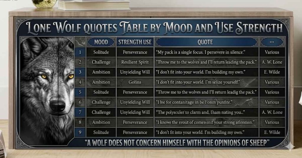 Lone Wolf Quotes Table by Mood and Use