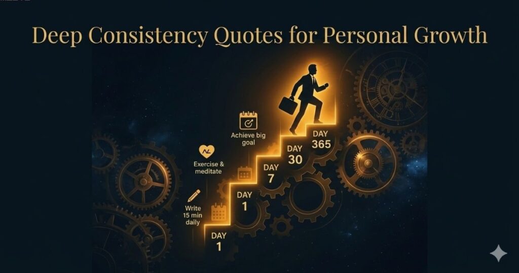 Deep change rarely announces itself. It happens inside daily acts that seem small at first. These deep consistency quotes for personal growth look beneath habit and reach identity. They ask what your routine is teaching your mind, your values, and your future self. “Consistency is how values become visible.” “Your habits reveal your hidden beliefs.” “The self is shaped in repetition.” “What you practice becomes your nature.” “Inner Strength grows through outer routine.” “Every repeated act teaches the soul.”